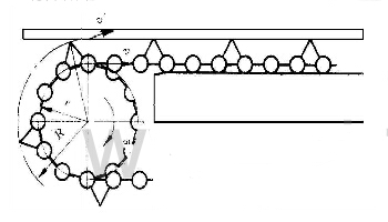(3)盡量使承載件頂點(diǎn)在繞鏈輪作圓周運(yùn)動(dòng)時(shí)位于鏈輪節(jié)圓上。